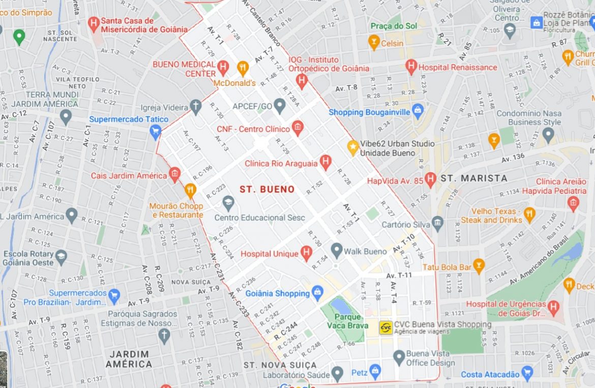 Quando pensamos em acesso à saúde podemos conferir no mapa diversos Centros Clínicos, Hospitais referência na capital, todos localizados no Setor Bueno.